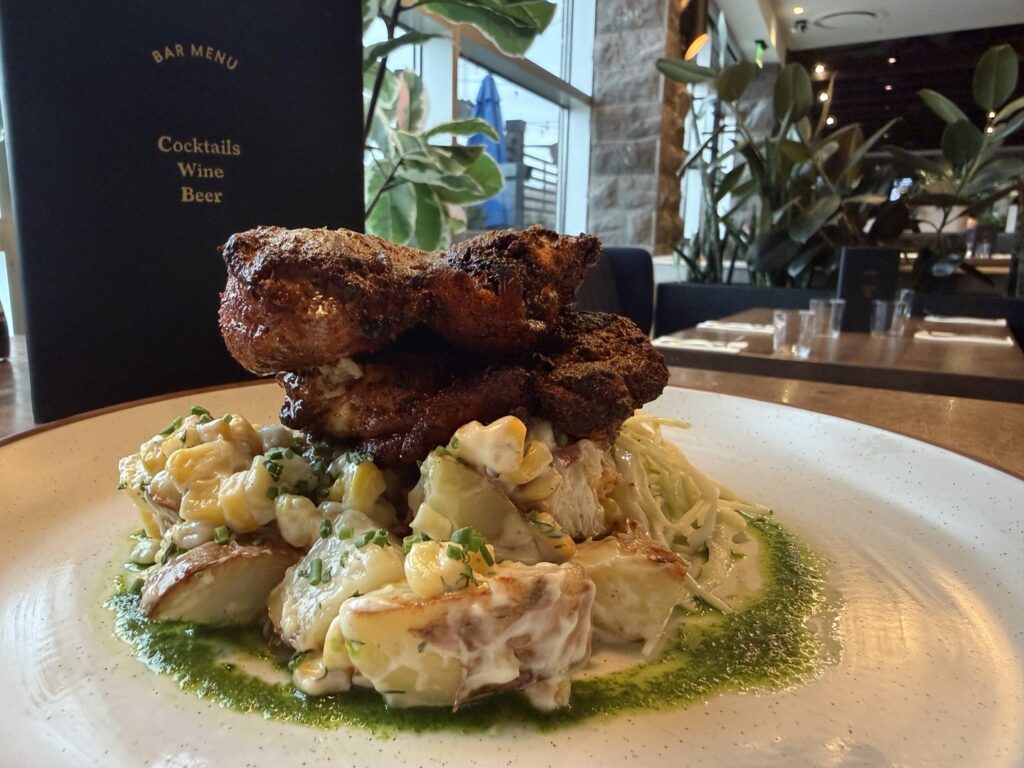 When asked which dish best represents his style in the kitchen, Chef Peter points to the Cajun Blackened Chicken. It is a dish built on balance. The warmth and spice of the chicken are paired with the creaminess of the potato salad, creating a bite that feels bold yet comforting.